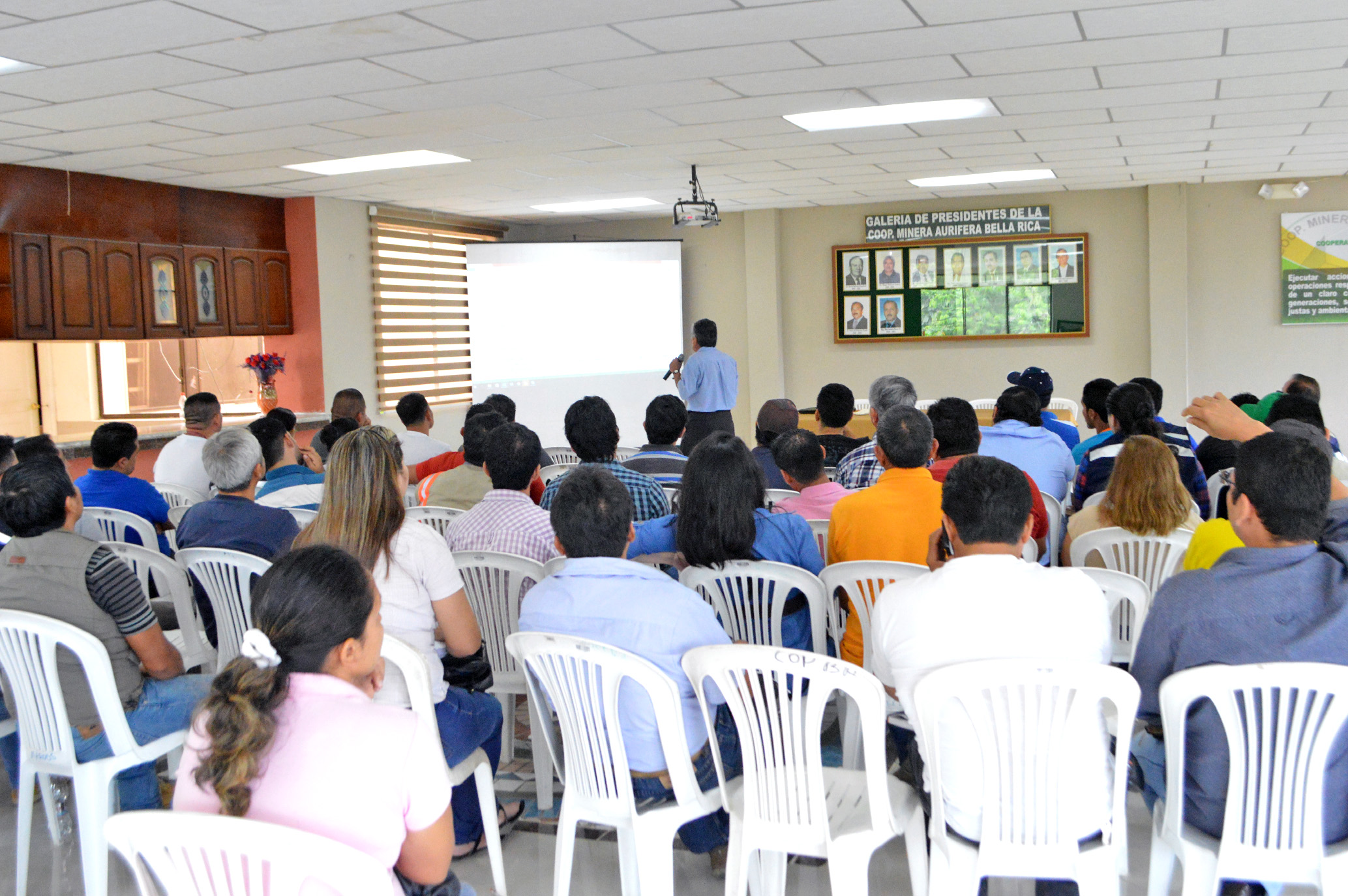 Camilo Ponce Enríquez.- Con el objetivo de sensibilizar y comprometer a la los departamentos técnicos, administrativos y socios de las diferentes operadoras mineras que laboran dentro de la concesión minera Bella Rica, al cumplimiento preciso y oportuno en la elaboración de los informes de producción de la cooperativa, tal como estipula la ley de minería en el articulo. 42 "A partir de la explotación del yacimiento, los titulares de las concesiones mineras deberán presentar al Ministerio Sectorial de manera semestral con anterioridad al 15 de enero y al 15 de julio de cada año, informes auditados respecto de su producción en el semestre calendario anterior, de acuerdo con las guías técnicas que prepare la Agencia de Regulación y Control Minero", la Cooperativa Minera Bella Rica, realizó taller de capacitación.
